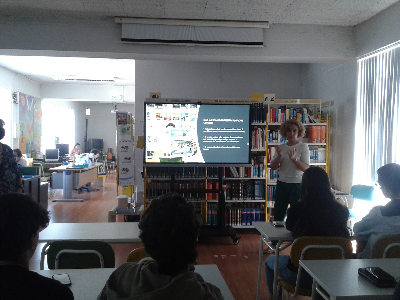 A conversa com a turma de 9.º ano fez-se em torno dos objetivos do jornalismo e dos princípios que o regem, mas também dos direitos e responsabilidades dos cidadãos perante as notícias.