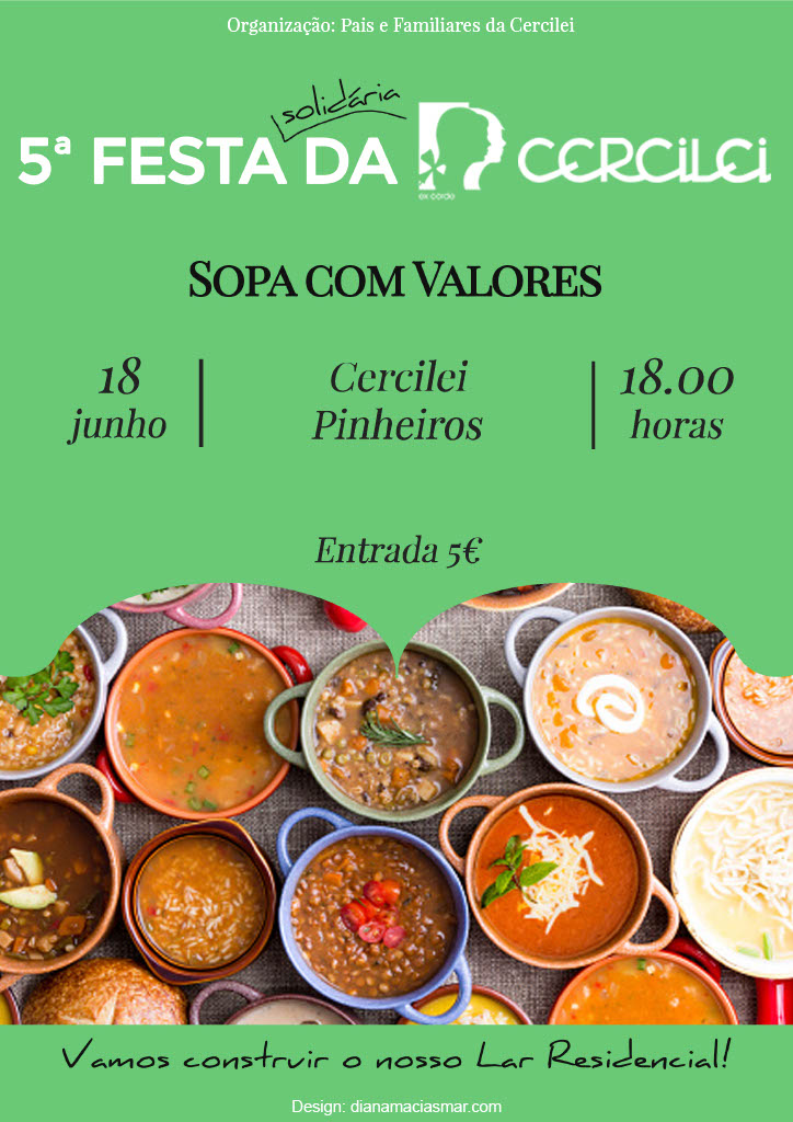 A 5ª Festa da Cercilei – Festival das Sopas, evento de cariz solidário, organizado com a colaboração dos pais e familiares dos utentes, tem lugar, a partir das 18 horas, na sede da instituição, nos Pinheiros.