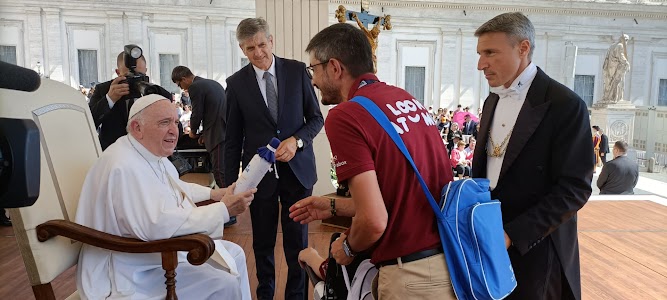 O papa Francisco, no final da audiência geral, saudou o grupo de idosos do Centro Paroquial dos Pousos, que se deslocou ao Vaticano, na sequência de uma carta que lhe tinham enviado em janeiro.
