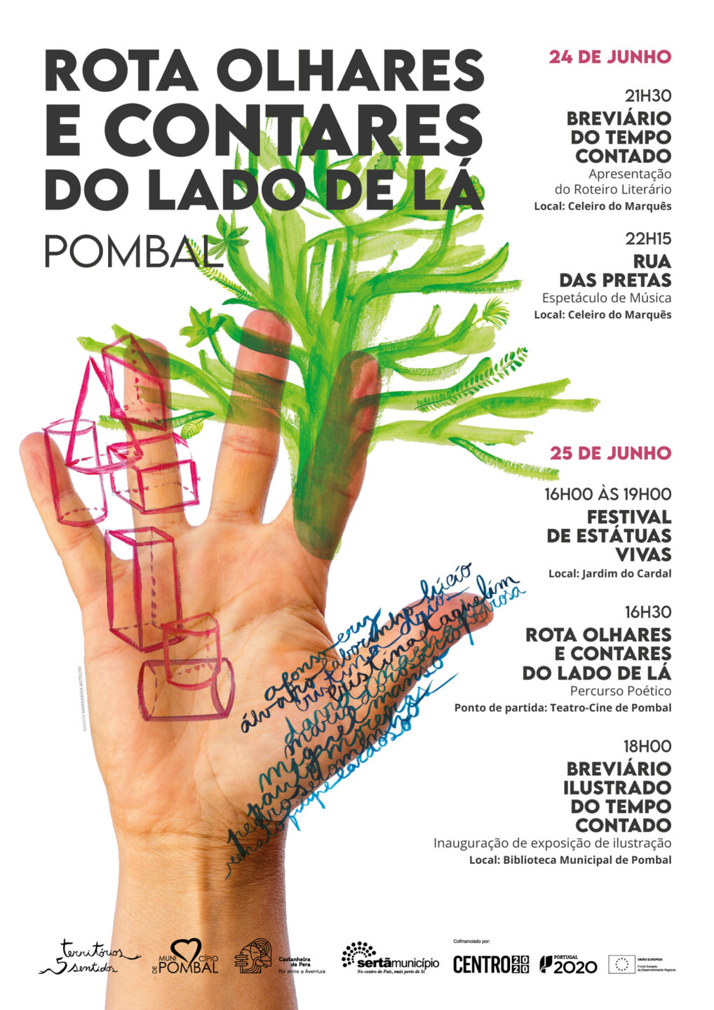 A partir das 16h30 de sábado é apresentado o percurso poético Rota dos Olhares e Contares do Lado de Lá, com partida do Teatro-Cine de Pombal. O dia termina na Biblioteca Municipal com a inauguração da exposição de ilustrações “Breviário Ilustrado do Tempo Contado”.