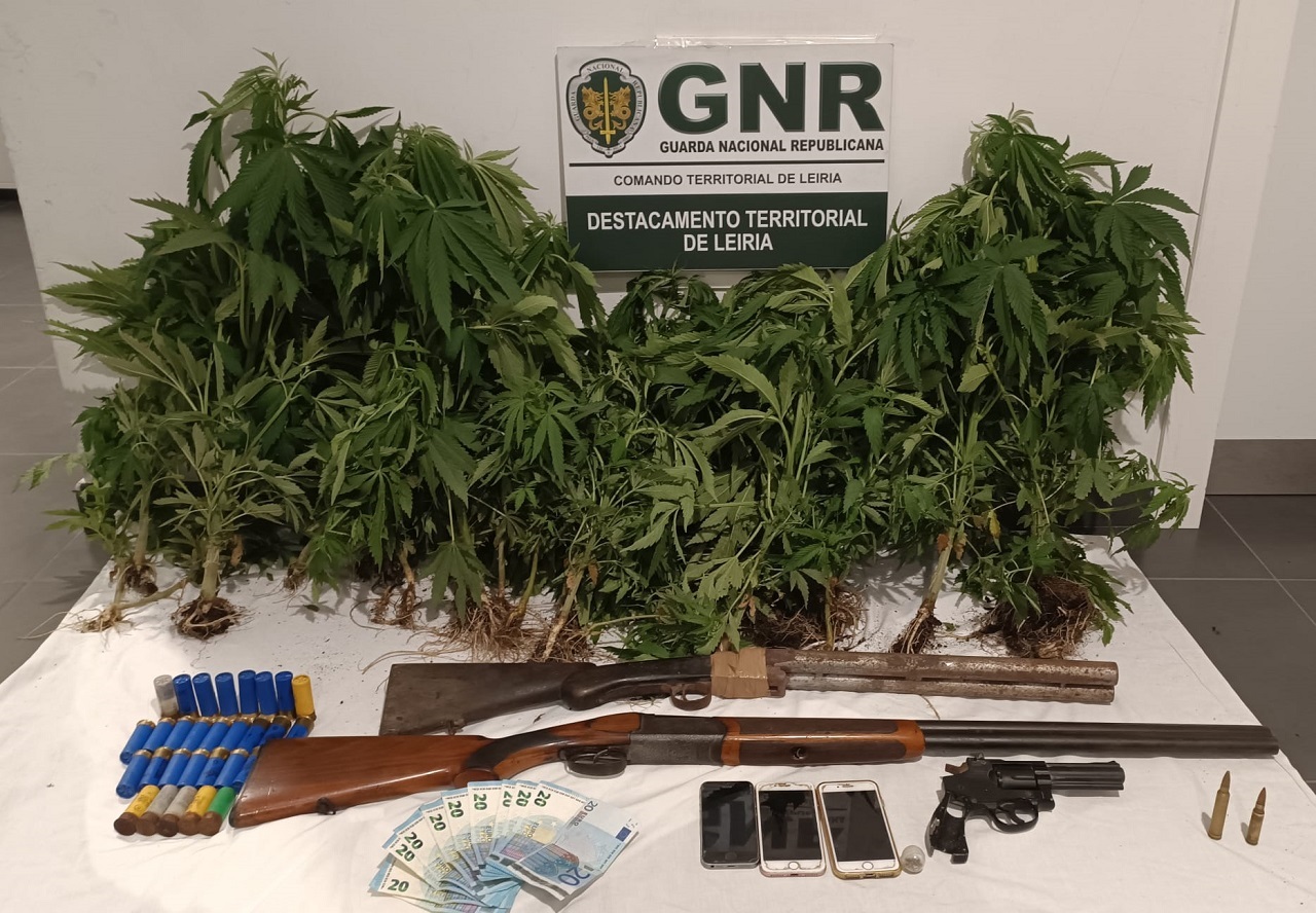 Foram apreendidos nesta operação 30 plantas de canábis, 32 sementes de canábis, três telemóveis, 220 euros em numerário, três armas e várias munições de diferentes calibres.