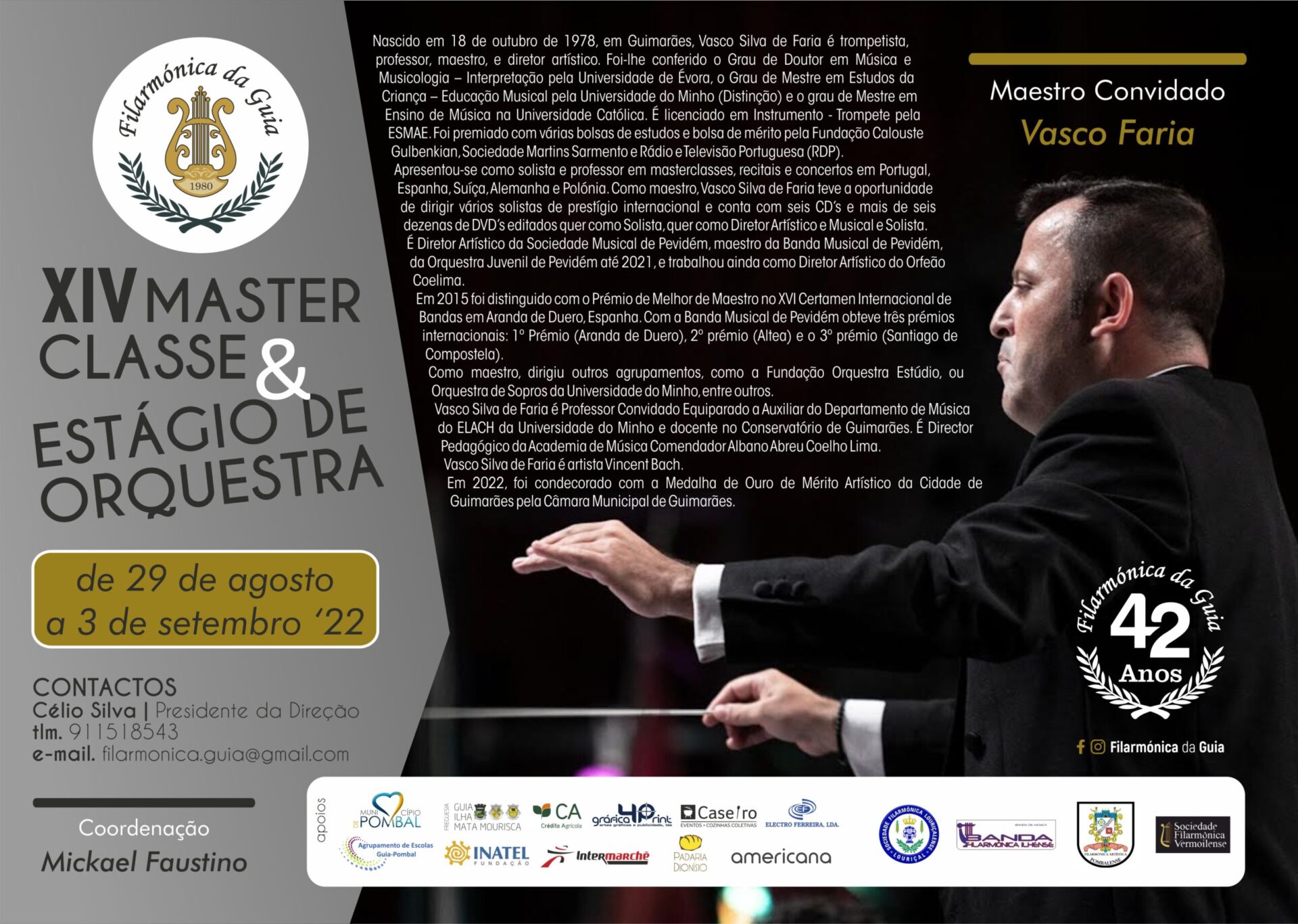 A coordenação está a cargo de Mikael Faustino e o maestro Vasco Faria será o convidado deste estágio. Trompetista, Vasco Faria tem um longo percurso ligado à música, sendo professor, maestro e diretor artístico, tendo atuado e dirigido já masterclasses e recitais em Portugal, Espanha, Suíça, Alemanha e Polónia.