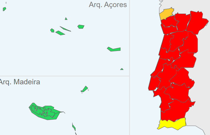 Previsão do Instituto Português do Mar e da Atmosfera "pinta" a vermelho praticamente todos os distritos do continente