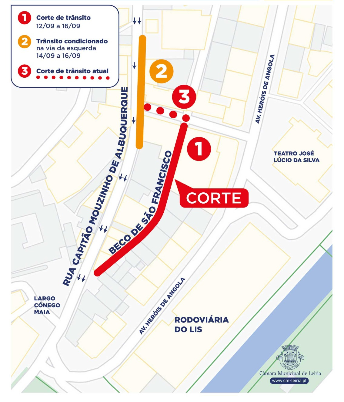 A Câmara de Leiria adianta ainda que o corte na rua Coronel Teles Sampaio Rio mantêm-se, bem como as restantes alterações já realizadas.