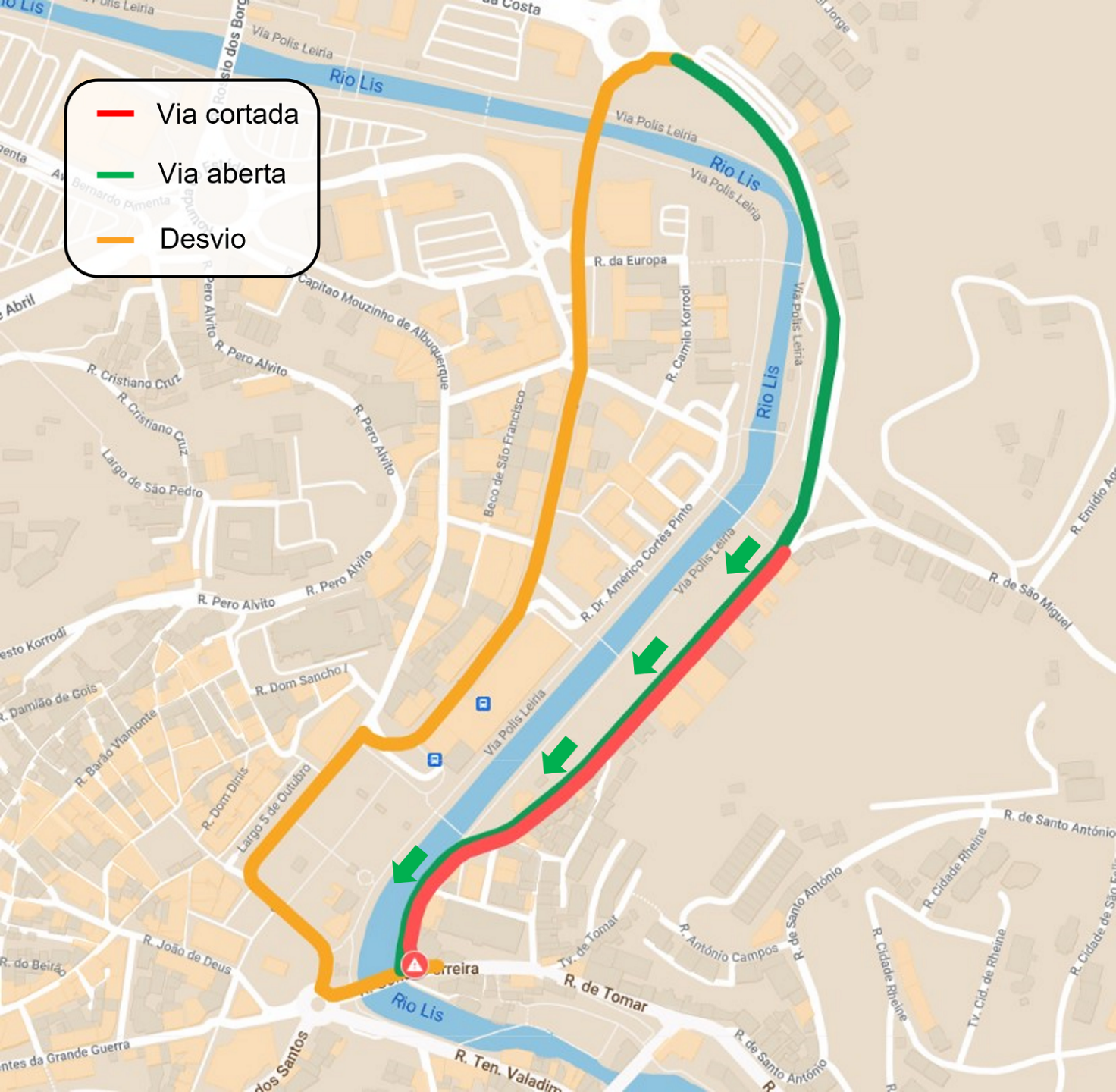 Como alternativa, a autarquia aconselha os condutores vindos da rua Conde Ferreira a seguirem pela ponte Afonso Zúquete, rotunda do Sinaleiro, largo 5 de outubro, avenida Heróis de Angola e avenida D. João III.