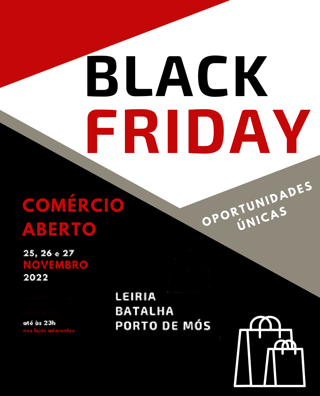 Vão ser três dias de horário alargado no comércio tradicional em Leiria, Batalha e Porto de Mós, anuncia a ACILIS – Associação de Comércio, Indústria, Serviços e Turismo da Região de Leiria. Entre 25 e 27 de novembro decorre mais uma edição de “Black Friday” naqueles concelhos, uma iniciativa da associação para dinamizar o comércio naqueles três concelhos, procurando atrair mais clientes às lojas locais.