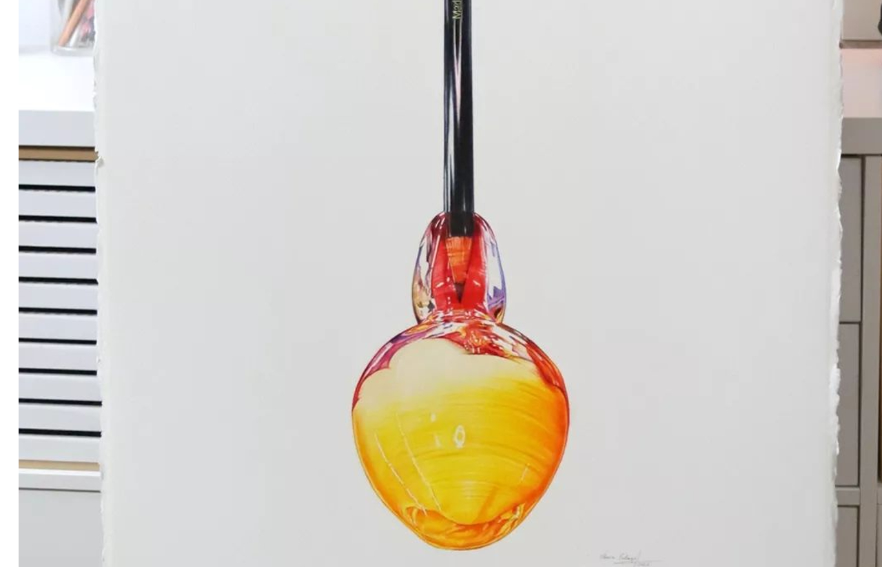 O vidro soprado começa numa bola incandescente na ponta de uma cana, por onde sai o ar que lhe dá forma. Mas na perspetiva de Vânia Colaço, a cana é um lápis de cor. É este o desenho que dá o mote à nova exposição da artista, em que o vidro da Marinha Grande ganha novo destaque desenhado e pintado a lápis de cor.