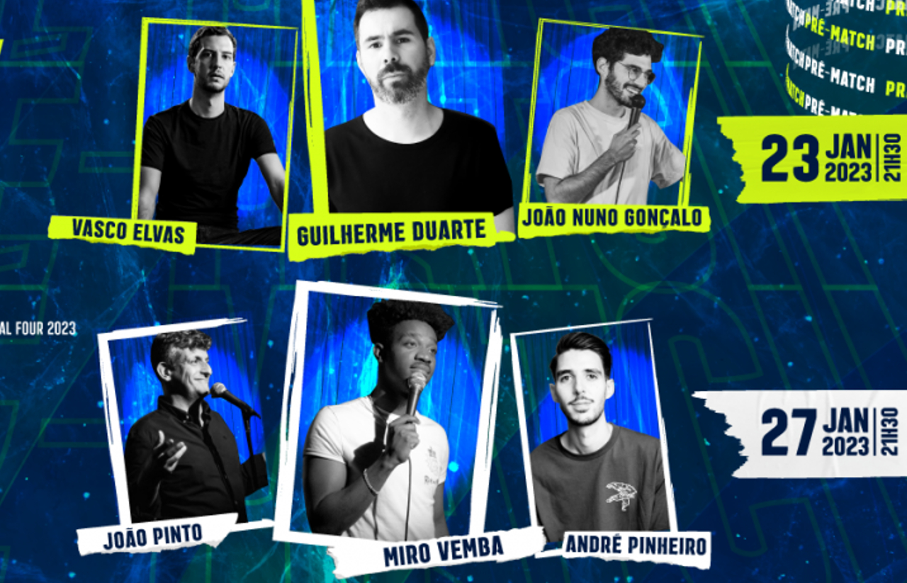 Os espetáculos de stand-up comedy têm como tema “pré-match” e realizam-se às 21h30, no Teatro Miguel Franco, em Leiria, antecedendo os jogos disputados na Final Four.