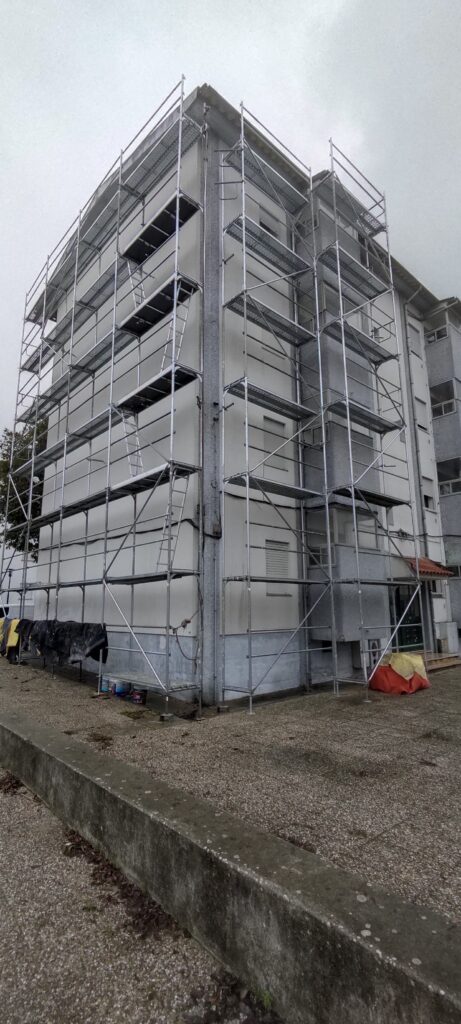 A empreitada engloba a remoção integral do revestimento original das coberturas daqueles prédios, para substituição por painel e chapa dupla metálica, bem como a colocação de isolamento térmico reforçado no teto. As fachadas dos edifícios estão também a ser alvo de pintura.