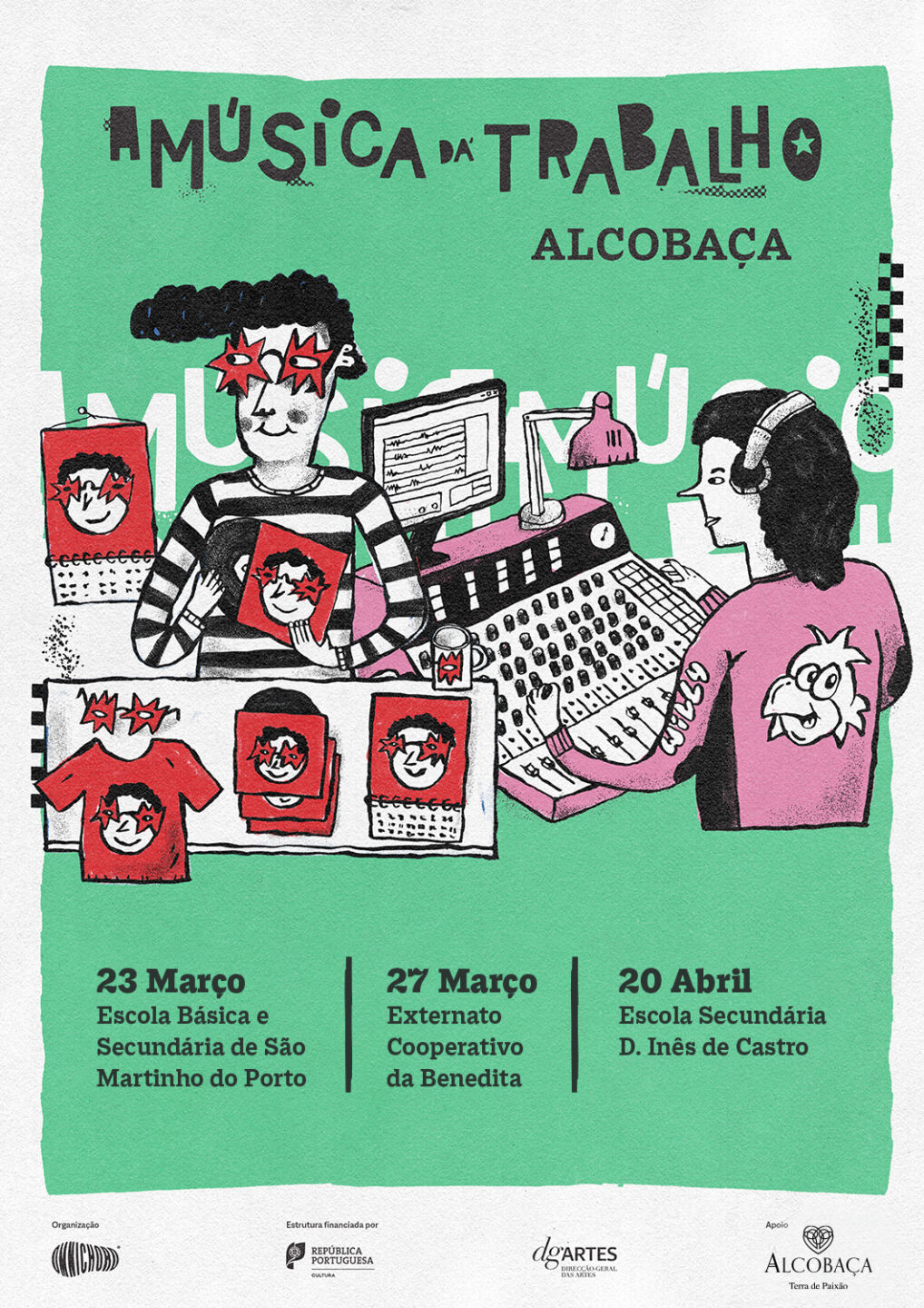 Todos os alunos vão receber ainda um exemplar do livro “A Música dá Trabalho”, com textos de Patrícia Martins e Hugo Ferreira e ilustrações de Diogo Monteiro (Tenório), que refletem profissões ou funções ligadas à indústria da música. Da técnica de luz à gestora de redes sociais, da engenheira de som ao assistente de palco, da compositora ao agente, são 22 personagens que guiam os alunos na descoberta de quem faz o quê antes da música lhes chegar aos ouvidos.