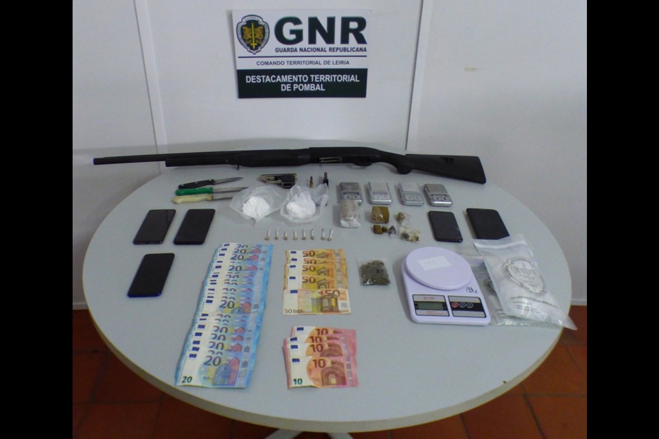 Segundo a GNR, foram igualmente confiscadas uma espingarda, uma pistola, três munições, 1.090 euros, seis balanças digitais, cinco telemóveis, três facas com produto estupefaciente e outros artigos alegadamente utilizados “na preparação/distribuição de doses individuais de produto estupefaciente”.