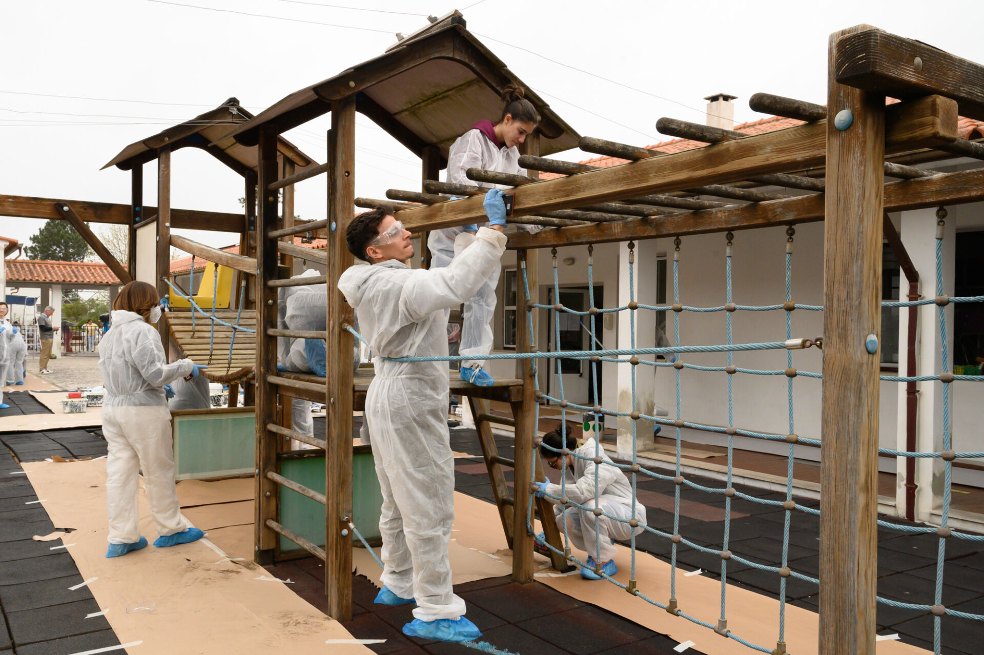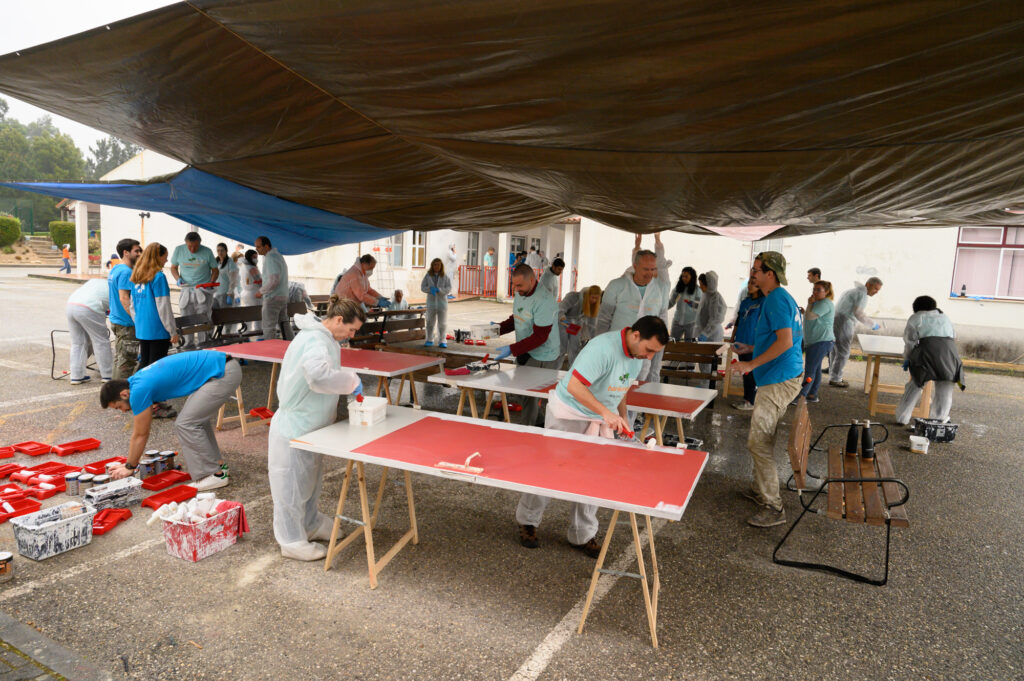 A ação solidária, que envolveu 500 pessoas, entre “colaboradores, famílias e amigos”, foi realizada em parceria com a associação sem fins lucrativos Just a Change, que se dedica à reconstrução de casas de pessoas carenciadas em Portugal.