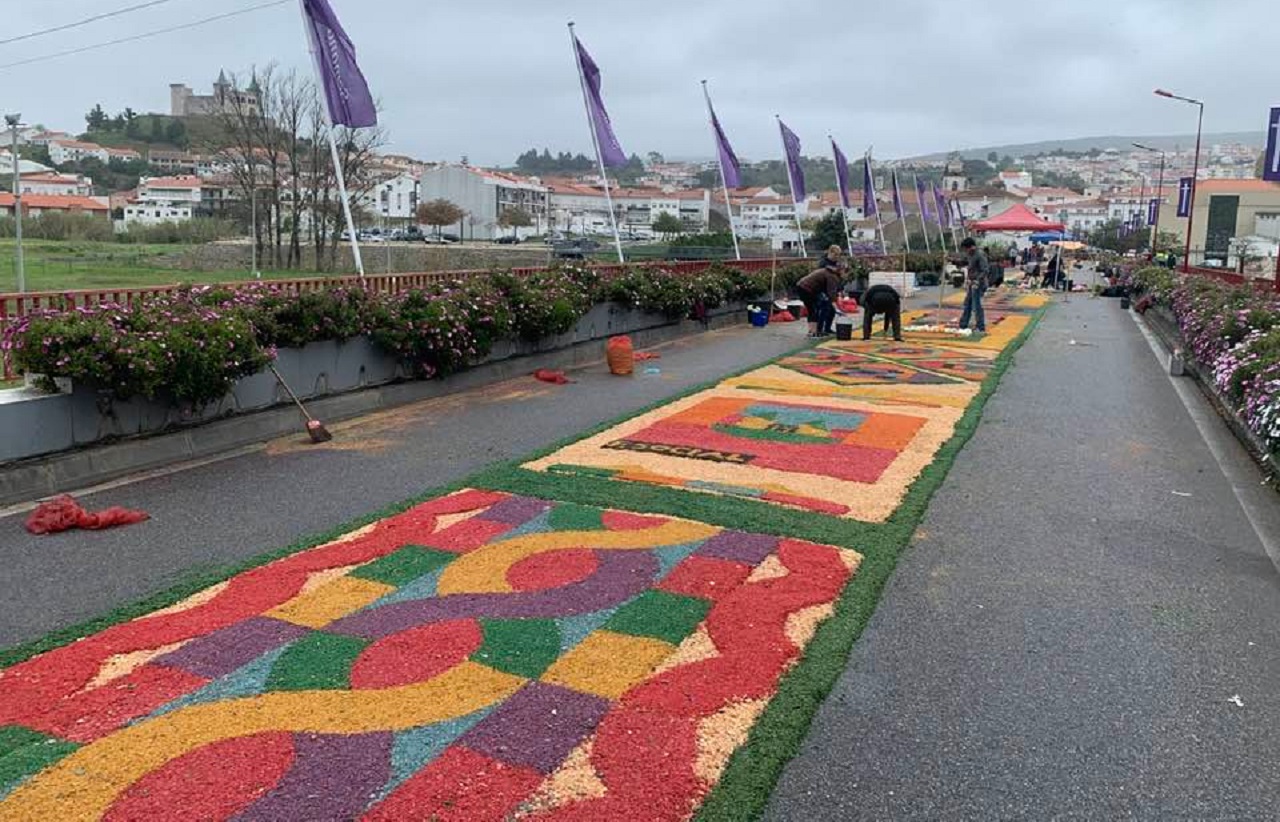 Um tapete de flores construído pela população de Porto de Mós ao longo de dezenas de metros está em destaque à entrada da vila, na Ponte de São Pedro, assinalando o primeiro ponto alto da Semana Santa, que arranca este fim de semana.