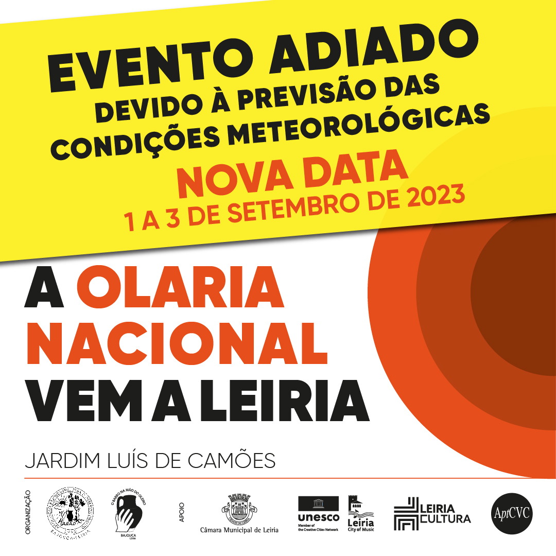 Segundo informação da Câmara de Leiria, na sequência das “previsões meteorológicas para o próximo fim de semana”, a Exposição Nacional de Olaria foi adiada para 1, 2 e 3 de setembro.