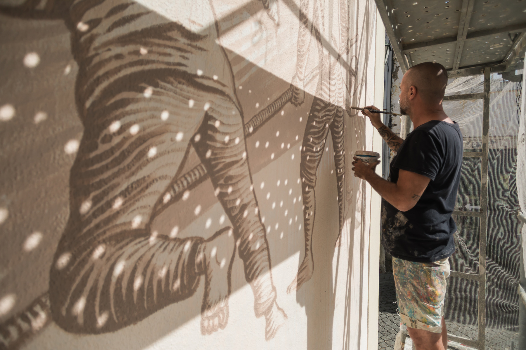 Da Bélgica viaja até Figueiró dos Vinhos um especialista em “stencil”, Jaune, que apresenta como característica do seu trabalho a exploração do “paradoxo entre o visível e o invisível”, para criar “instalações e quadros carregados de humor”.