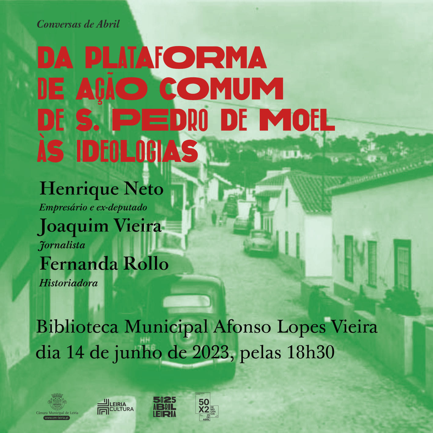 O encontro é organizado pela comissão executiva de Leiria para as Comemorações dos 50 anos do 25 de Abril e vai contar com a presença do empresário e ex-deputado Henrique Neto, do jornalista Joaquim Vieira e da historiadora Fernanda Rollo.