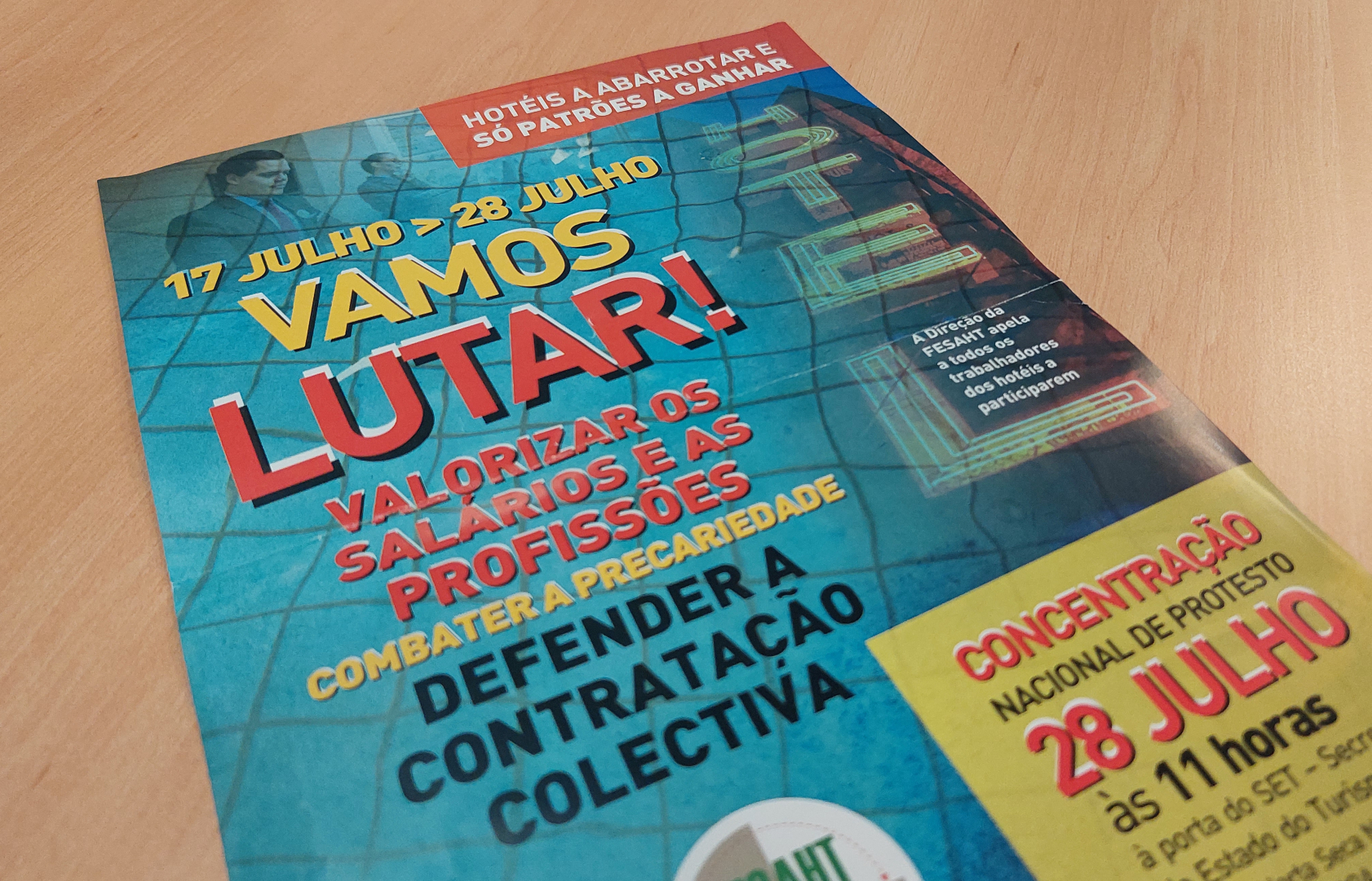 De 17 a 28 de julho decorre um protesto nacional, organizado pela Confederação Geral dos Trabalhadores Portugueses (CGTP) e pela Federação dos Sindicatos de Agricultura, Alimentação, Bebidas, Hotelaria e Turismo de Portugal (FESAHT).