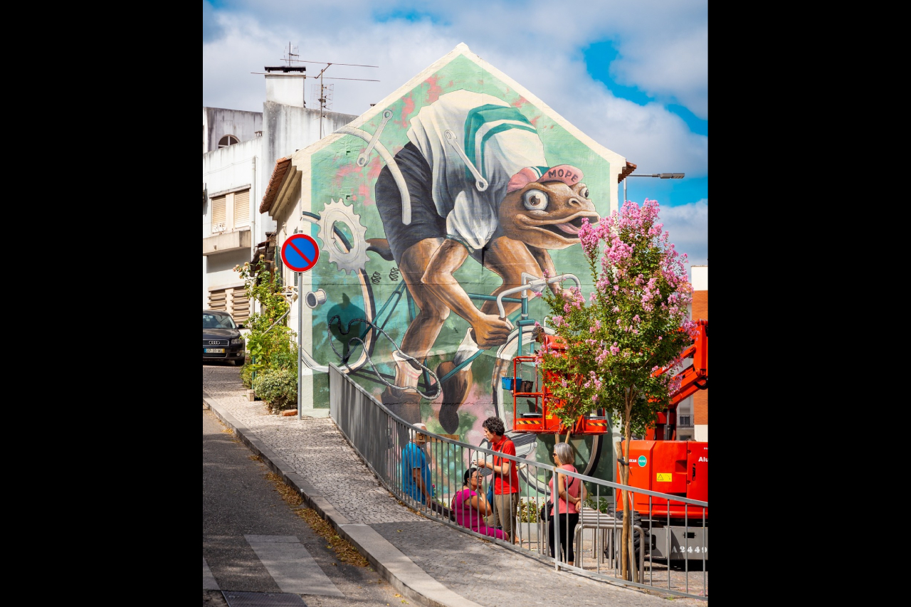 A cidade de Pombal conta com uma nova obra de “street art”, criada numa das fachadas do edifício onde está instalado um histórico estabelecimento de comercialização e reparação de bicicletas, próximo do mercado municipal e do principal acesso ao castelo.