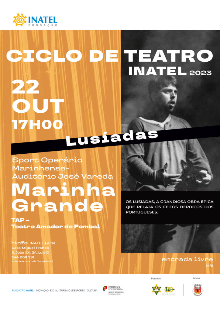 O auditório José Vareda, do Sport Operário Marinhense, recebe por sua vez o Teatro Amador de Pombal no dia 22 (17 horas), que representará “Os Lusíadas”.