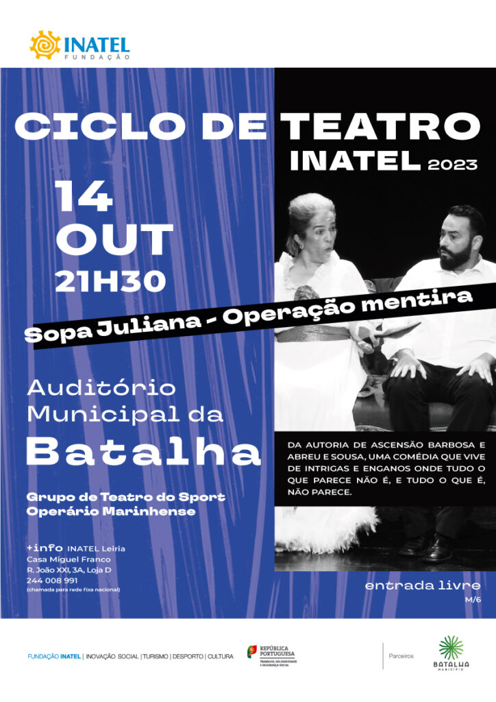 O ciclo arranca no dia 14 de outubro (21h30), com a apresentação de “Operação mentira”, do Grupo de teatro do Sport Operário Marinhense no Auditório Municipal da Batalha.