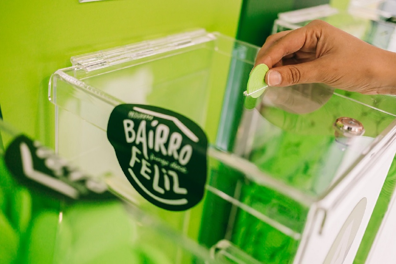 Para votar num projeto, os clientes da cadeia de distribuição alimentar recebem uma “moeda Bairro Feliz” por cada 10 euros em compras, no máximo de três moedas, para colocar no “mealheiro” correspondente à causa que considerem mais merecedora do apoio financeiro.