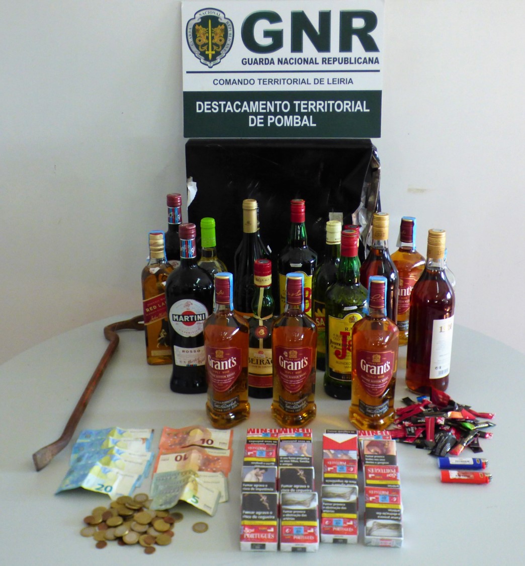 Entre o material apreendido estão 170 euros em numerário, 18 garrafas de bebidas espirituosas, 16 maços de tabaco, uma máquina registadora e “diverso material utilizado pelos suspeitos para se introduzirem no interior do estabelecimento”.