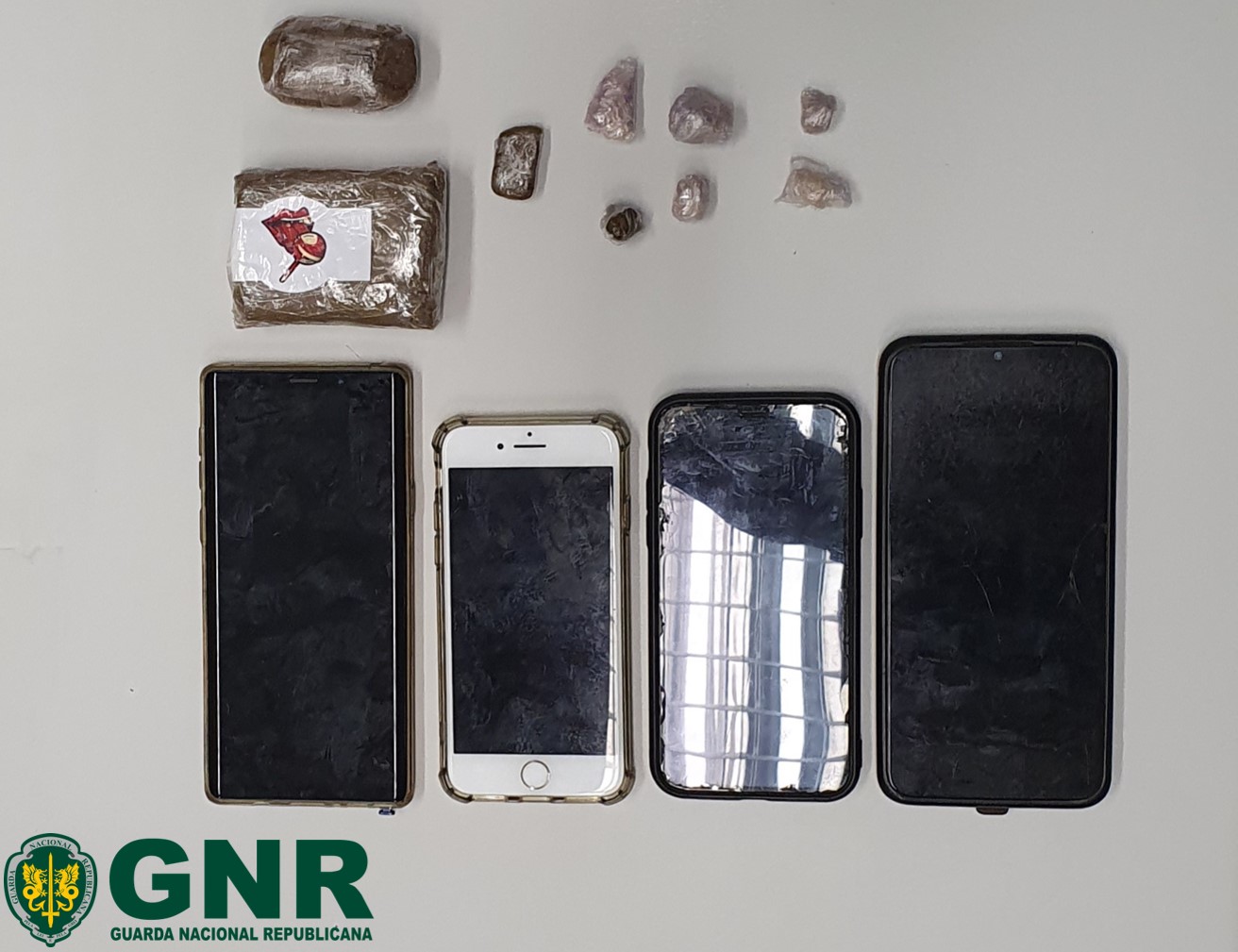 Foram ainda apreendidas 85 doses de MDMA, quatro telemóveis, duas navalhas, uma balança e película aderente.
