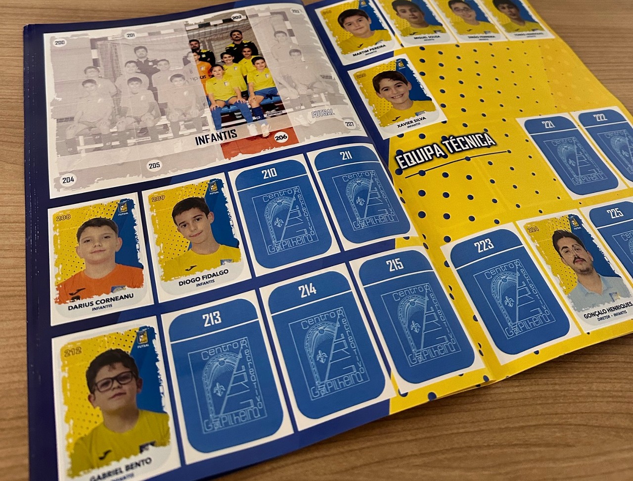 Responsáveis da coletividade e atletas do futsal, dança e futebol, compõem a coleção. No total são 391 cromos