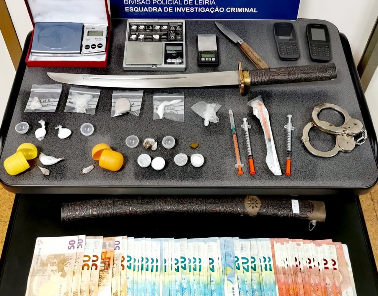 “Foram apreendidos outros objetos conotados com o tráfico e consumo de droga, bem como um sabre, seringas, telemóveis e algemas metálicas iguais às utilizadas pelas forças de segurança”, refere o comunicado do Comando Distrital de Leiria da PSP.