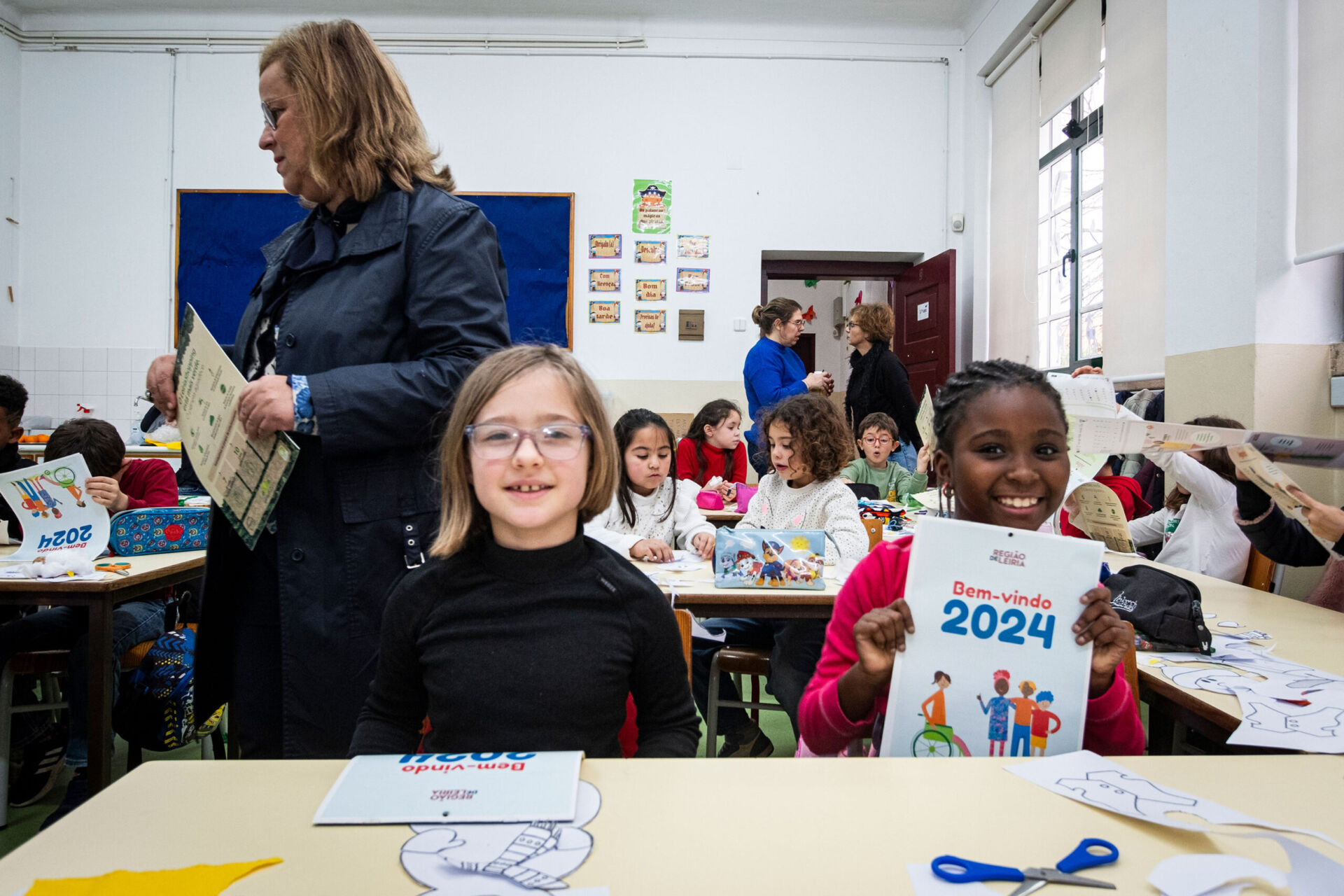O sorriso ganhou espaço no rosto das crianças do 1º ciclo da Escola EB1 do Arrabalde, em Leiria, na terça-feira, dia 16, assim que o Calendário de 2024, publicado pelo REGIÃO DE LEIRIA, lhes chegou às mãos.
