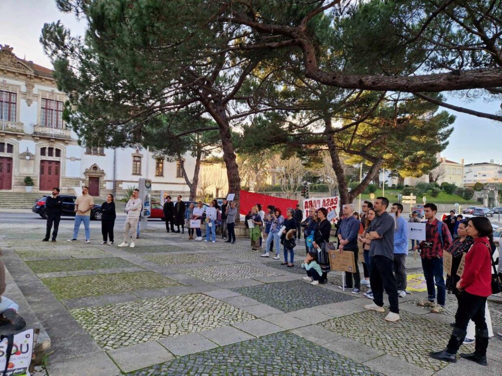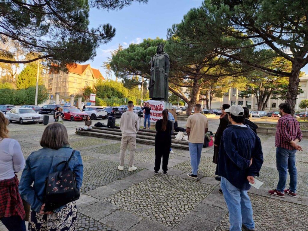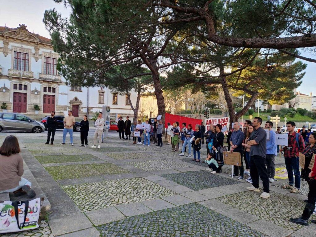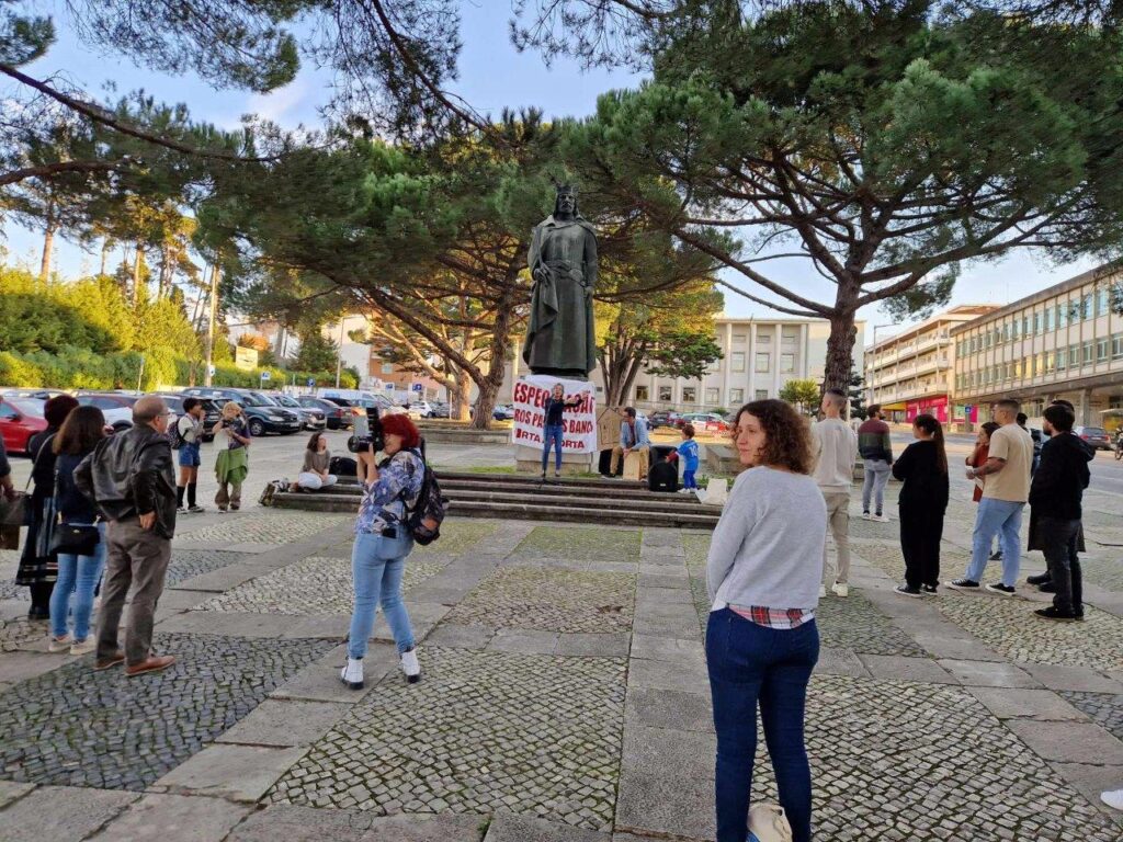 O protesto pelo direito à habitação decorre esta tarde em Leiria, com algumas dezenas de pessoas concentradas no Largo da República, em frente ao edifício dos Paços de Concelho.