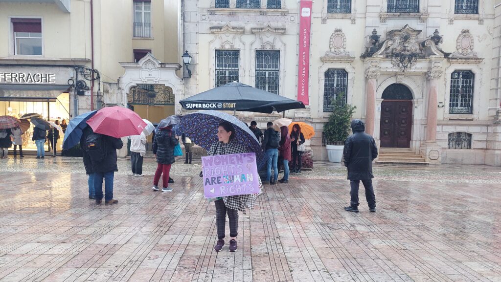 A concentração organizada pelo Leiria Feminista, núcleo da Rede 8 de Março (Rede 8M), reuniu homens e mulheres, de diferentes orientações sexuais e credos, numa luta pela “igualdade de direitos de todas as pessoas, independentemente de razão de género, de origem, de classe social, de nível de riqueza”