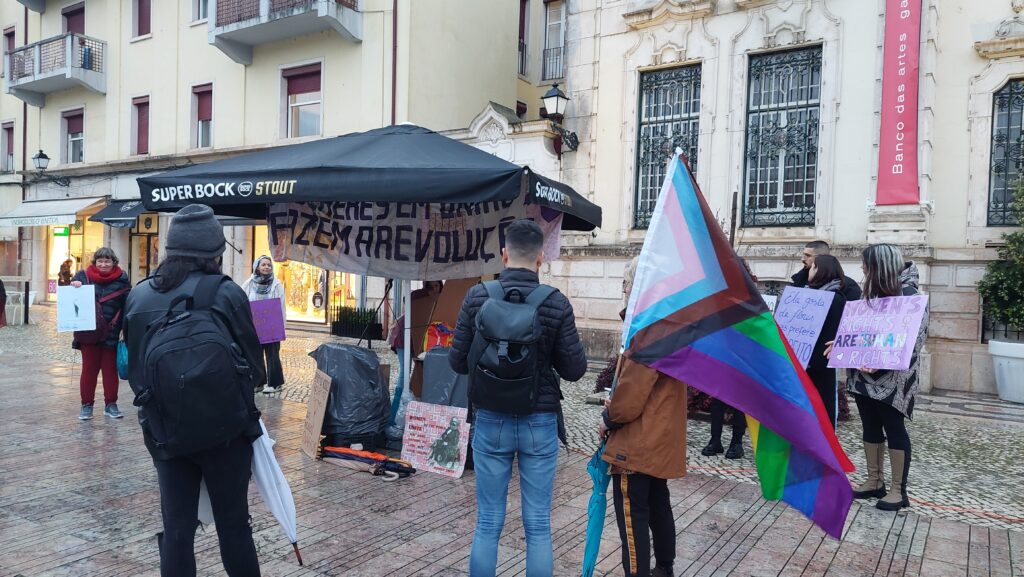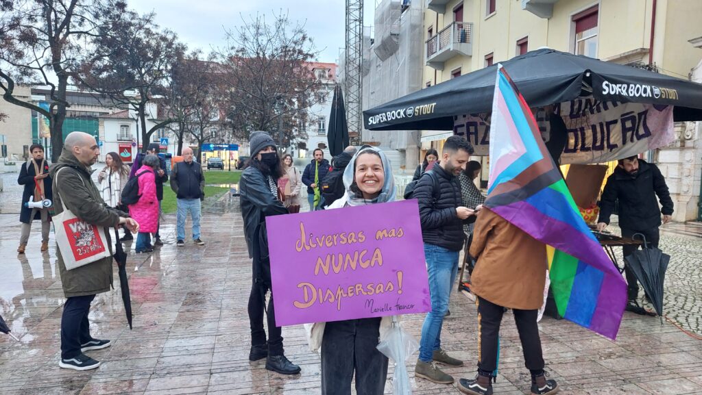 “O nosso movimento é interseccional, por isso é que estão aqui várias bandeiras”, explicou Joana Pinto, elemento da organização, fazendo alusão à presença de pessoas da comunidade LGBTI Leiria.