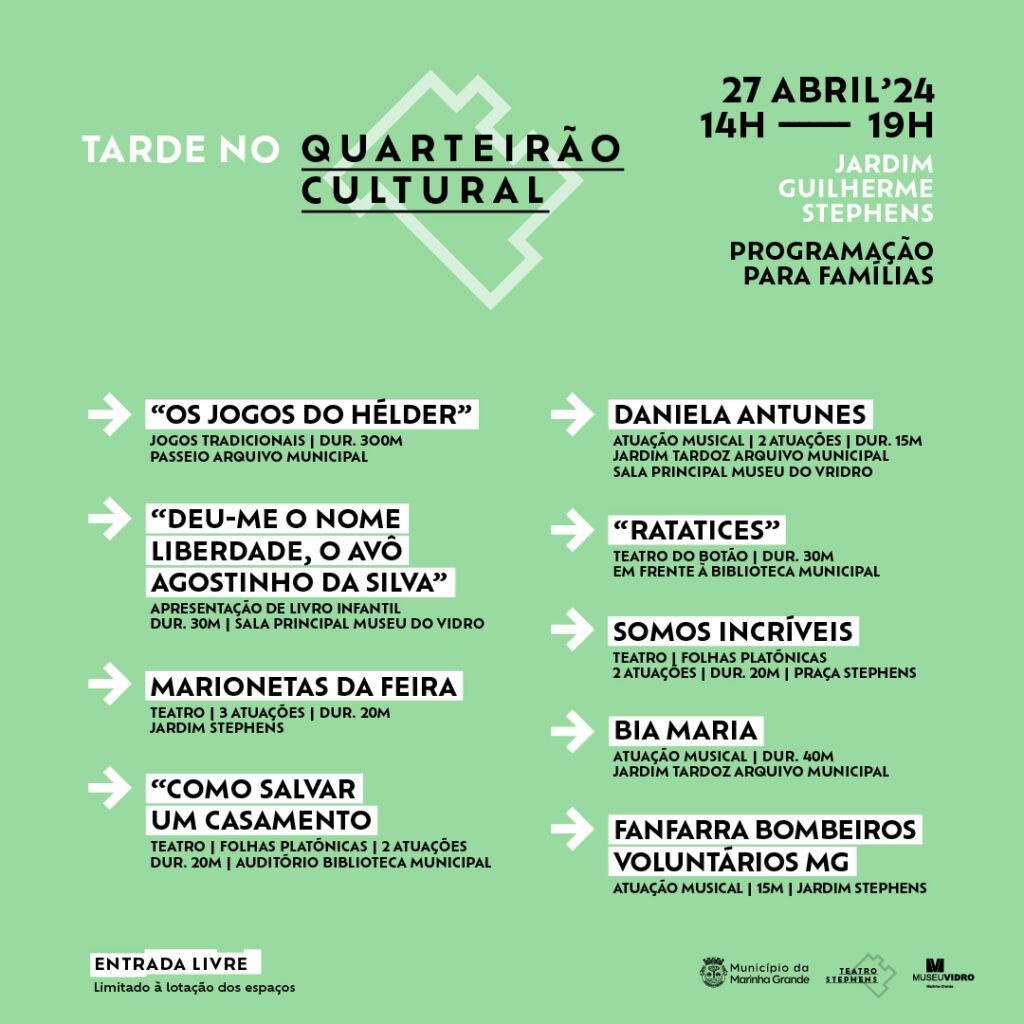 Inspirada no 25 de Abril, a programação previa Os Jogos do Hélder, teatro de Folhas Platónicas e do Teatro do Botão, Marionetas da Feira ou música de Bia Maria, Daniela Antunes e da Fanfarra dos Bombeiros, entre outros.