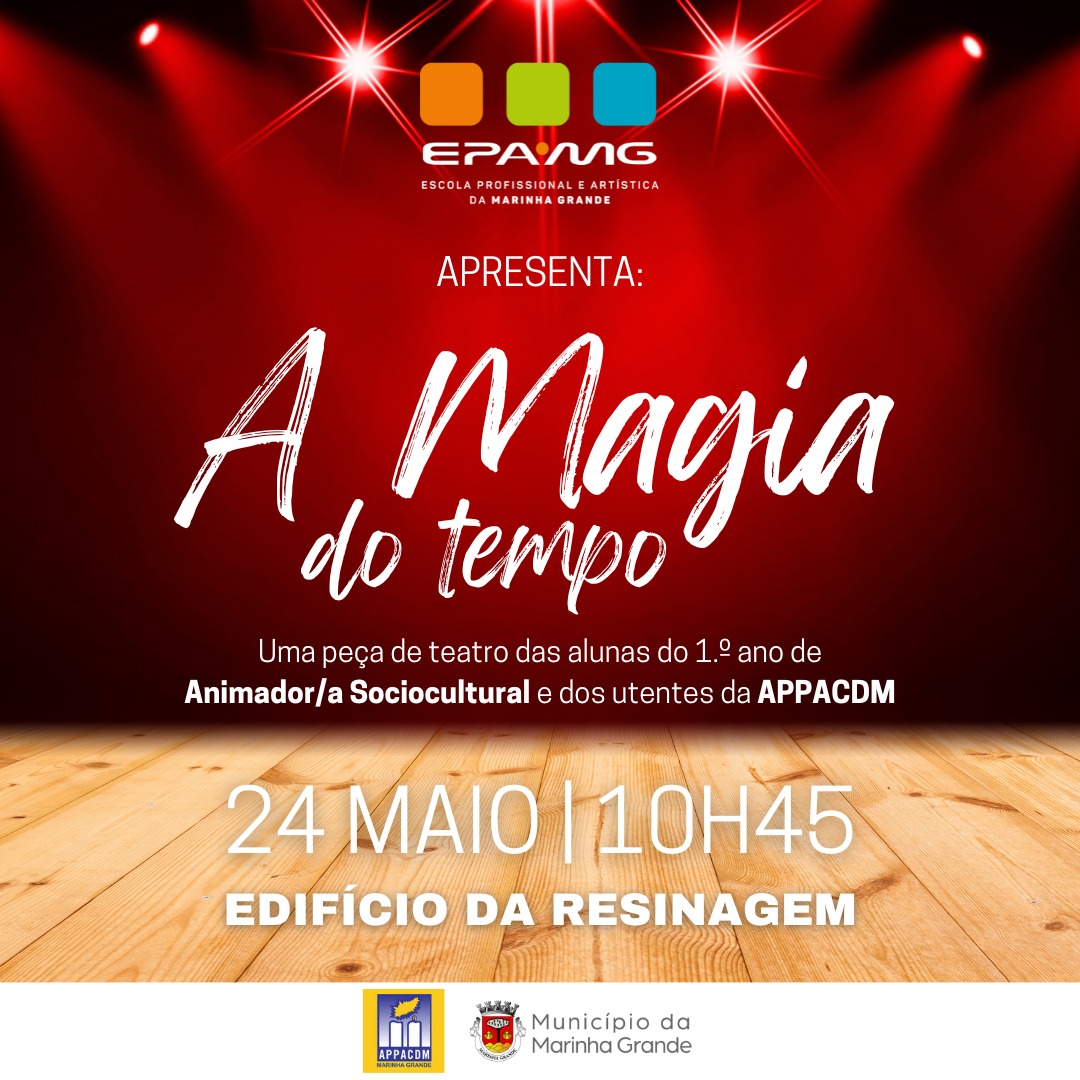 No próximo dia 24 de maio, pelas 10h45, no Edifício da Resinagem, no concelho de Marinha Grande, será apresentada a performance teatral “A Magia do Tempo”.