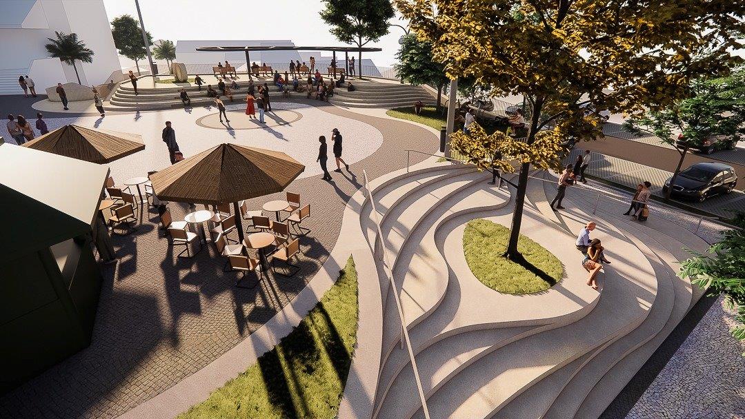 O piso vai ser nivelado, vão ser criadas instalações sanitárias, um parque infantil, área de fitness, canteiros de flores, entradas acessíveis, estacionamento e o coreto vai ser descentralizado, para cumprir com as necessidades do espaço onde situa a Igreja de Nossa Senhora do Amparo.
