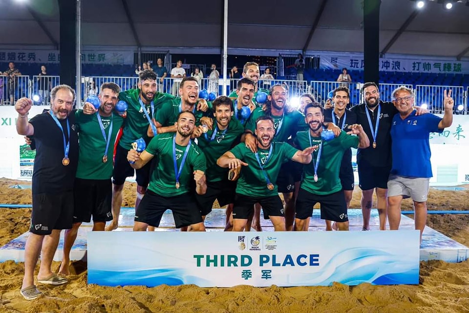 A seleção nacional, com os leirienses Rúben Serrano, Tomás van-Zeller, Francisco Santos e Simão Santos, quase todos com várias temporadas disputadas no circuito regional de Leiria, venceu a Alemanha, por 2-0, no jogo de acesso ao pódios e melhoraram a classificação de 2022 (10.º posição). ESta é a primeira medalha de sempre para Portugal em competições internacionais em andebol de praia, no escalão sénior.