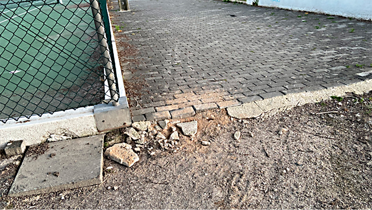 No dia 1 de julho, o piso do parque desportivo da urbanização da Quinta do Seixal foi danificado devido à circulação de uma máquina escavadora, que ali fez uma vala do “Leiria OCR Police”.