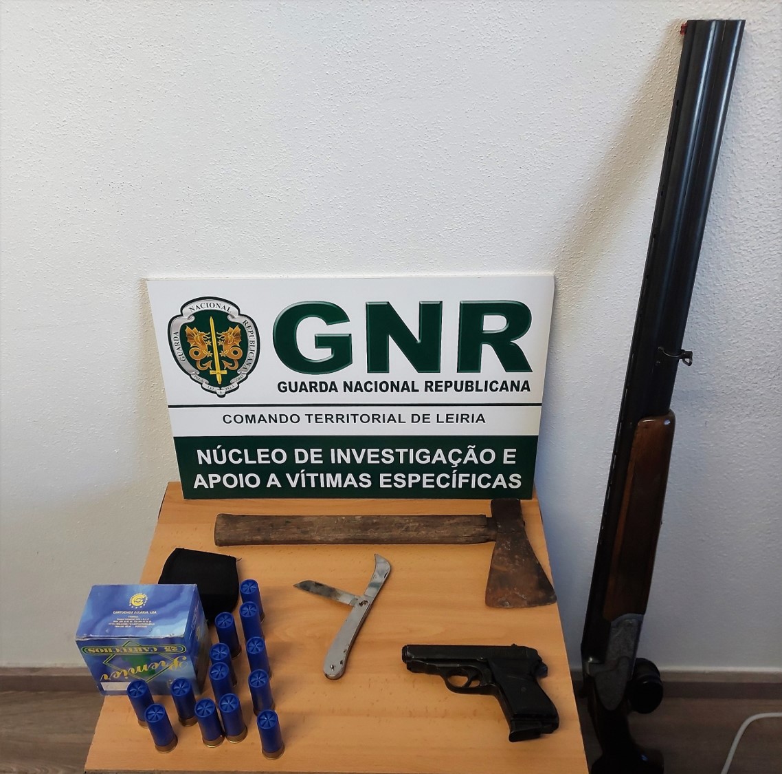 No cumprimento de um mandado de detenção e dois de busca, uma domiciliária e outra em veículo, através do Núcleo de Investigação e Apoio a Vítimas Específicas, a GNR apreendeu uma arma de caça e uma pistola de alarme, além de diversos cartuchos, uma navalha de lâmina dupla e um machado.