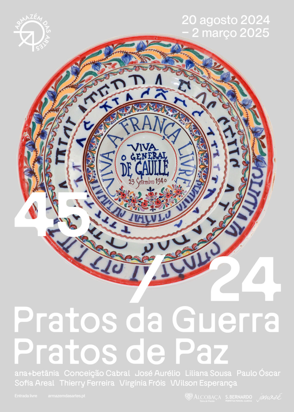 A inauguração é esta terça-feira, às 15 horas, com entrada livre. Para o dia 23 de agosto está prevista uma visita da curadoria a “45/24 Pratos de Guerra, Pratos de Paz”, às 19 horas, também com acesso gratuito.