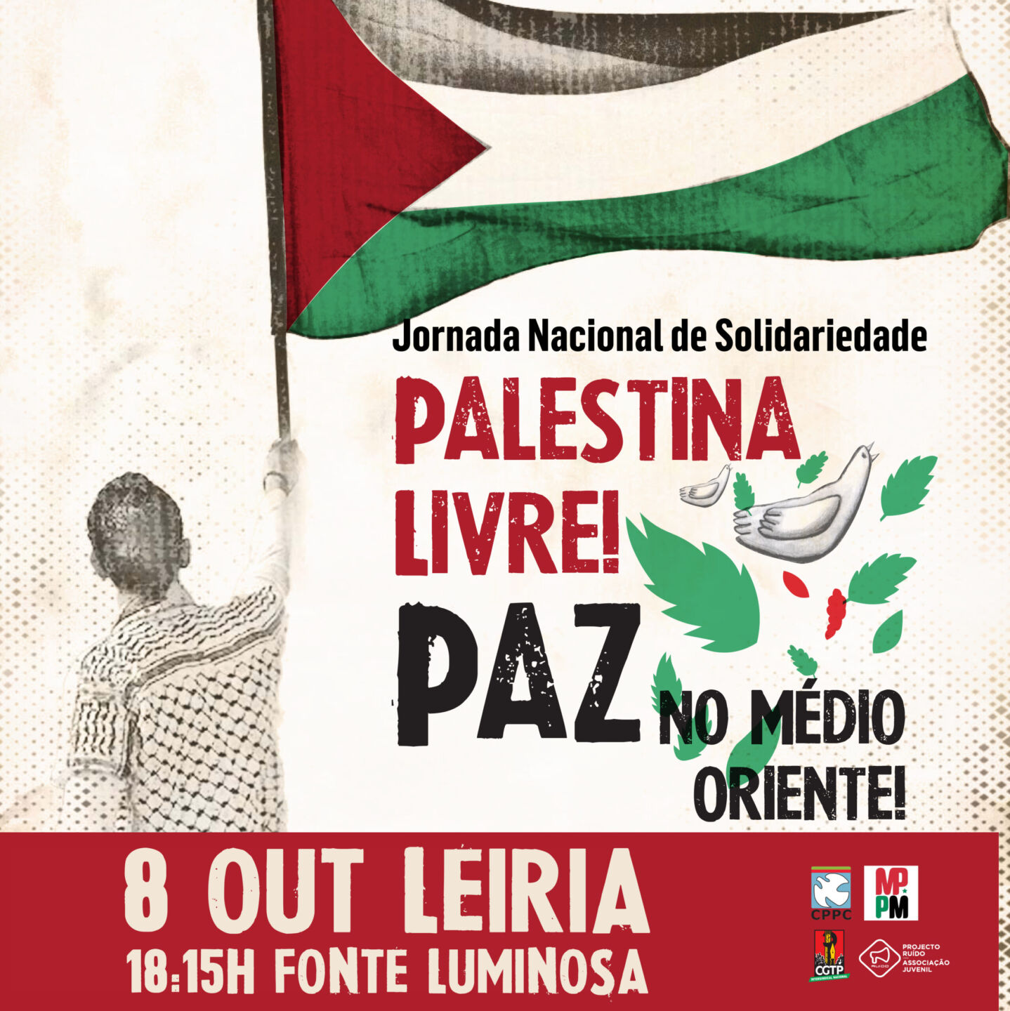 Sob o lema “Palestina Livre! Paz no Médio Oriente”, a Jornada Nacional de Solidariedade vai passar por várias cidades do país, até 12 de outubro, e terá lugar em Leiria junto à Fonte Luminosa, pelas 18h15 de dia 8, terça-feira.