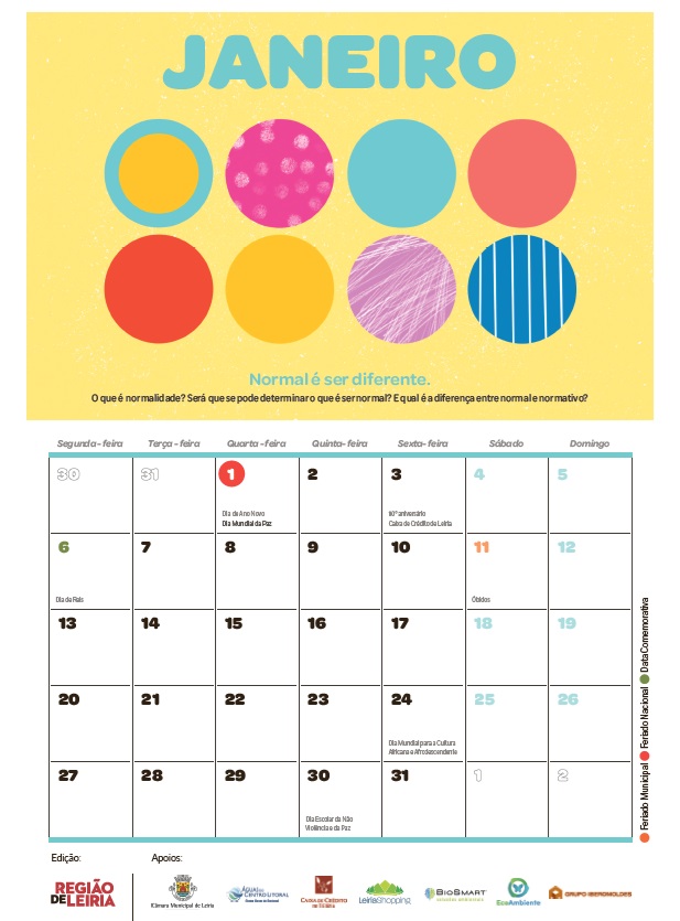 Esta publicação é uma aposta do REGIÃO DE LEIRIA desde 2018, que procura ser mais do que uma agenda de dias e de efemérides, introduzindo nas rotinas do dia a dia, pequenas ações enquadradas em atividades lúdicas, com mensagens e reflexões, em torno de temas centrais.