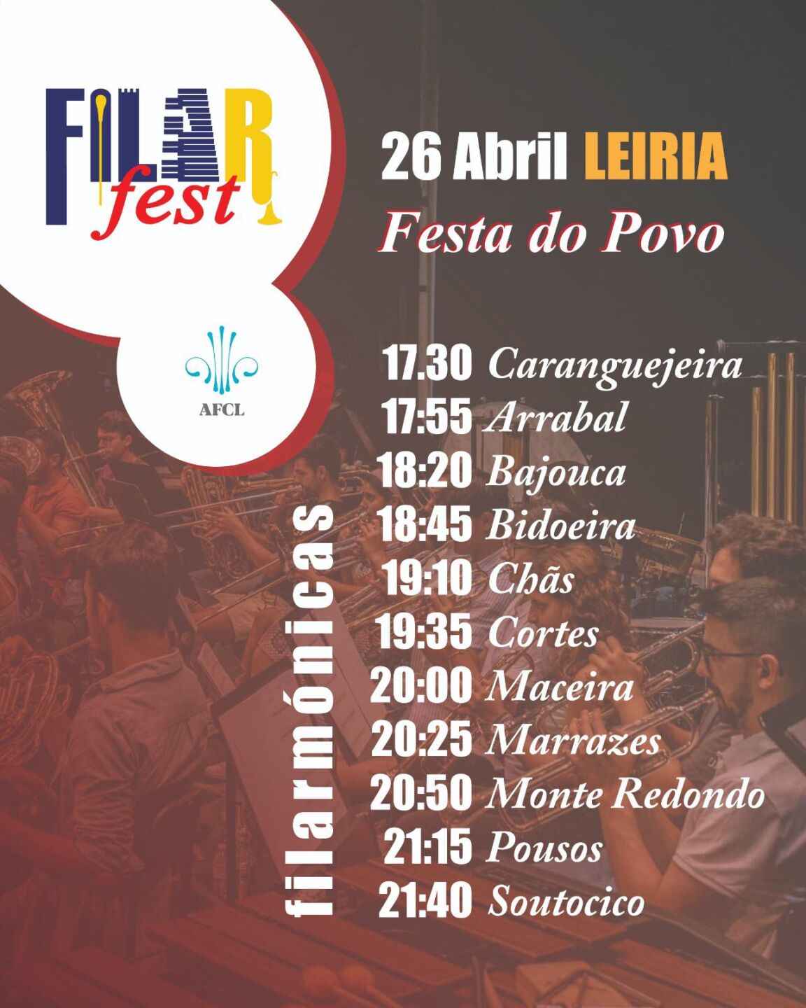 São mais de 650 os músicos filarmónicos que se fazem em Leiria ouvir este sábado à tarde, dia 26 de abril. Integram as 11 bandas do concelho e vão tocar pela liberdade, evocando a liberdade garantida pela revolução do 25 de Abril na Festa do Povo, que este ano estreia o FilarFest – Festival Filarmónico.