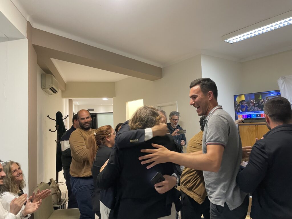 Foi por volta das 22h47, que a contagem fechou no concelho de Leiria, onde estava pendente uma última freguesia. Quem estava sentado, levantou-se. Luís Paulo Fernandes começou a gritar de alegria e de repente formou-se uma roda à volta de Cristina Henriques, a terceira da lista do Chega por Leiria, que faltava eleger para o partido conquistar o resultado que não conseguiu em 2024 e que Luís Paulo Fernandes tanto almejava e ansiava desde o início da noite.