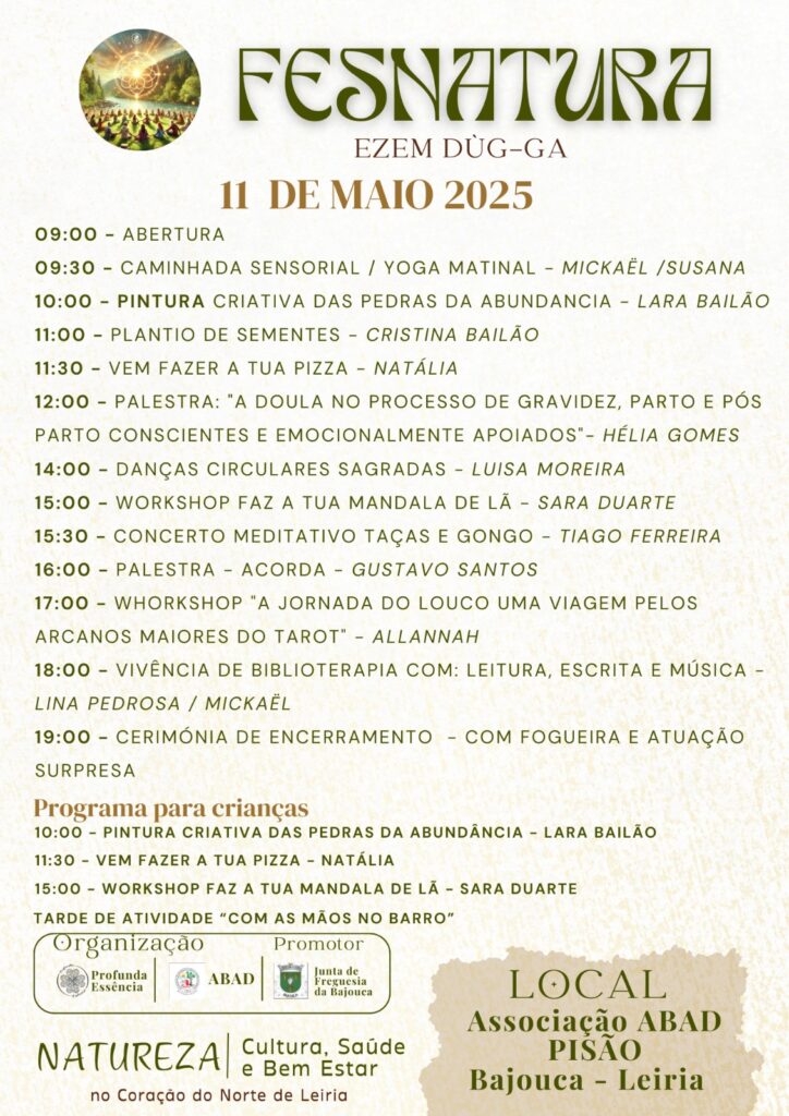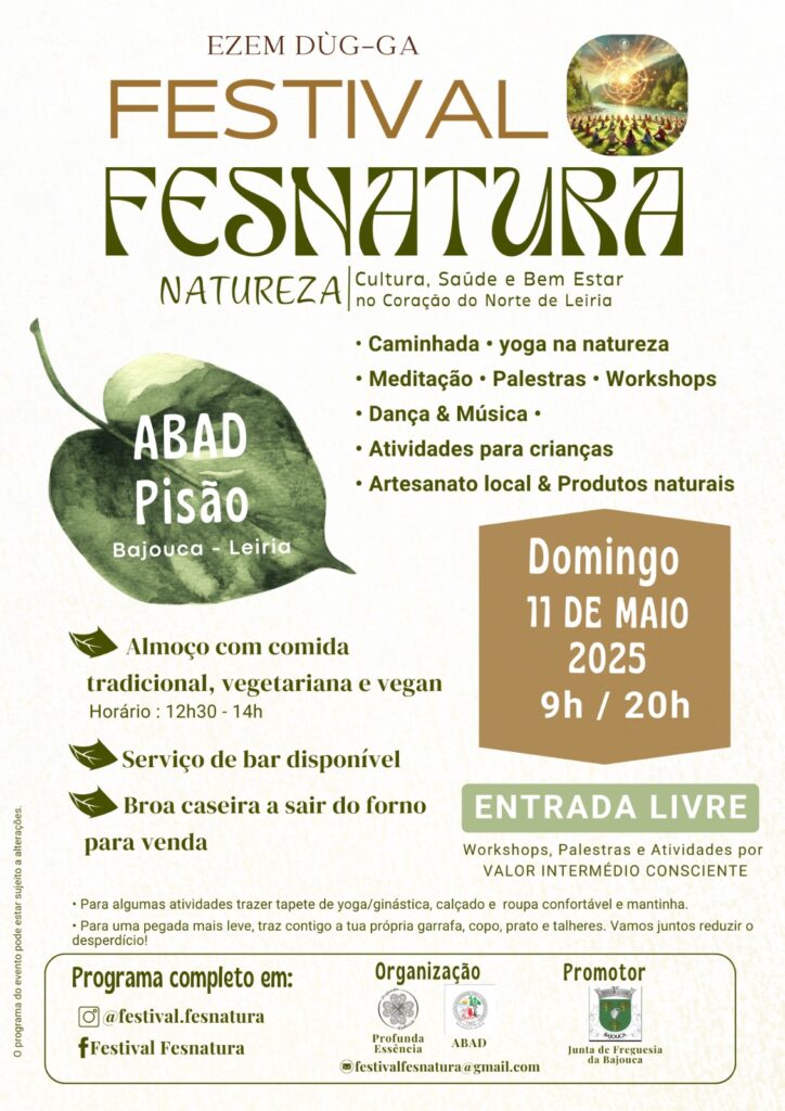 Este não é o primeiro evento intermédio associado ao FesNatura. Em fevereiro, Monte Real acolheu a versão “Yule” (inverno), e para junho, no dia 21, está prevista a edição “Litha” (verão). Contudo, o principal evento associado ao FesNatura acontece a 27 e 28 de setembro, no II FesNatura – versão “Mabon” (outono), na ABAD e parque do Pisão na Bajouca.