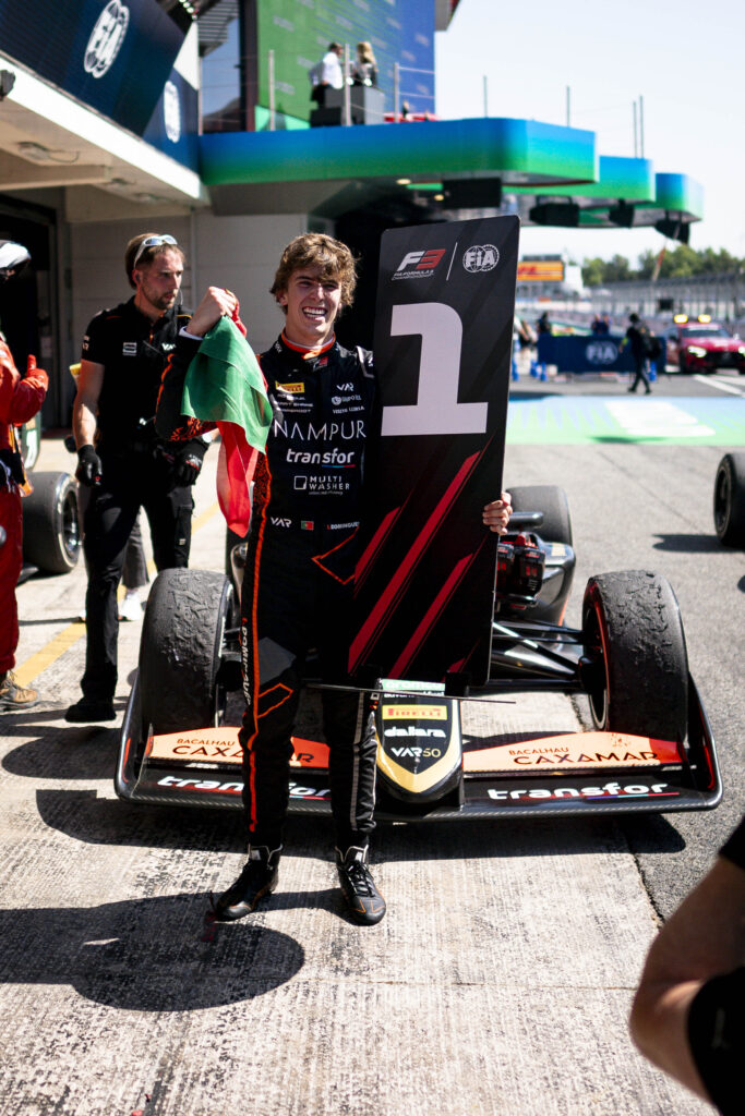No final, o hino nacional português tocou no circuito da Catalunha, num momento muito emotivo para o piloto, que esta temporada se estreia na competição, uma das categorias de acesso à Fórmula 1.