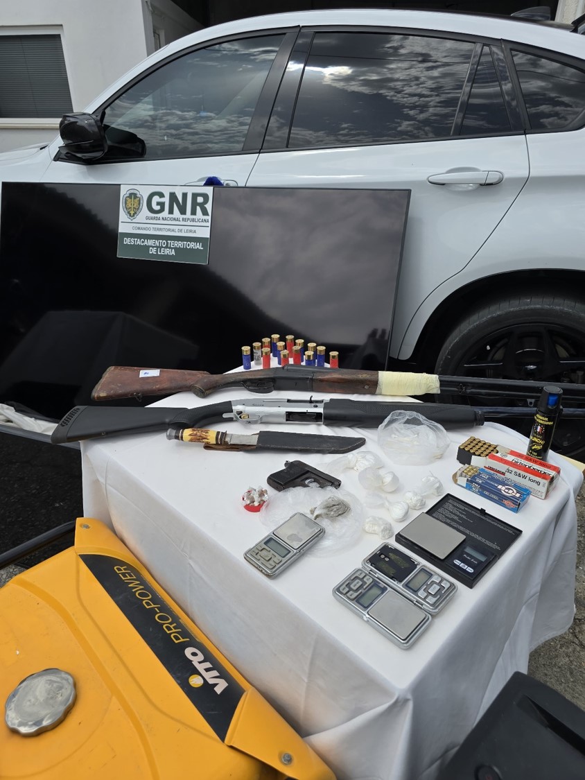 A GNR apreendeu também 21.031 euros em numerário, uma viatura ligeira, uma pistola, duas caçadeiras, uma arma branca, gás pimenta, munições, cinco balanças de precisão, 26 telemóveis e diversos artigos eletrónicos.