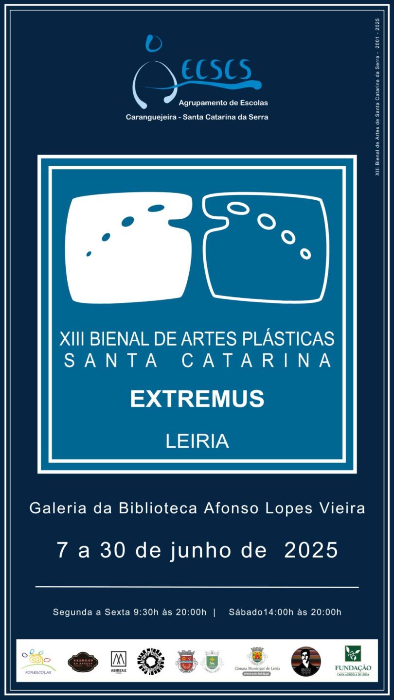 Alunos do Agrupamento de Escolas de Caranguejeira – Santa Catarina da Serra mostram obras de arte alusivas às situações extremas da qualidade, na XIII Bienal de Artes de Santa Catarina da Serra “EXTREMUS”, patente na Biblioteca Municipal Afonso Lopes Vieira, em Leiria, a partir de sábado, 7 de junho.