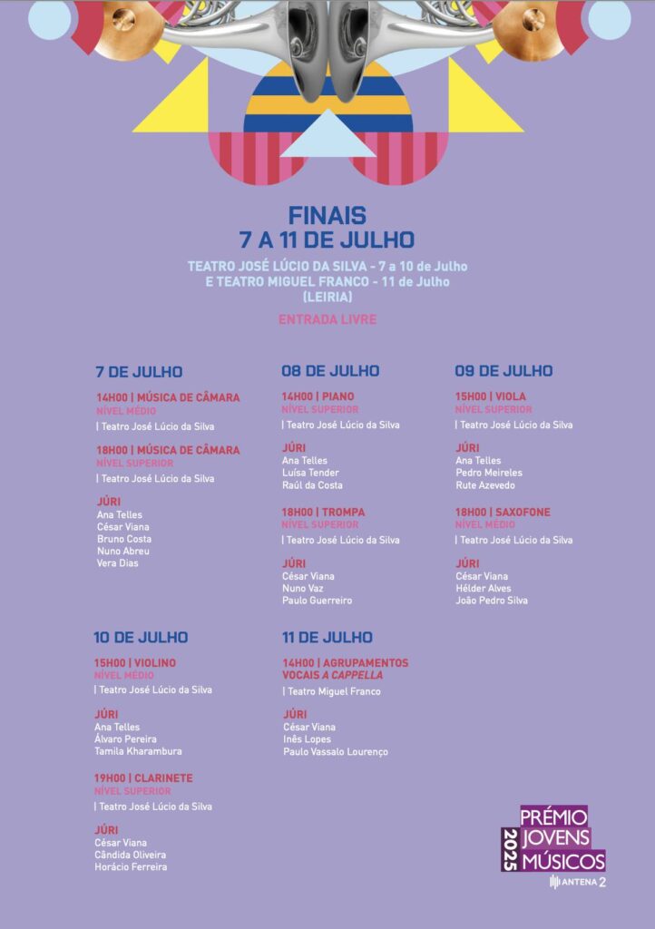 Na sexta vez que realiza finais fora de Lisboa, o PJM traz a Leiria um conjunto de novos valores da música nacional, que vão estar em avaliação no Teatro José Lúcio da Silva (TJLS) e Teatro Miguel Franco (TMF).