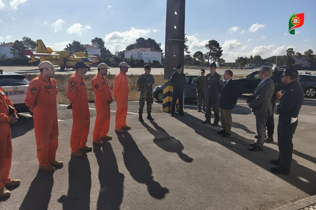 Durante esta manhã, o secretário de Estado da Proteção Civil, Rui Rocha, o presidente da ANEPC, José Manuel Moura, e o comandante nacional da Proteção Civil, Mário Silvestre, deslocaram-se à Base Aérea de Monte Real para se despedirem e agradecerem à tripulação dos dois aviões Canadair enviados por Marrocos para apoiar no combate aos incêndios.